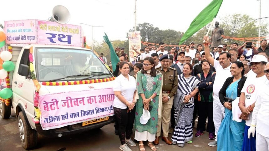 दुर्ग। बेटी बचाओ बेटी पढ़ाओ योजना अंतर्गत 24 जनवरी 2024 को राष्ट्रीय बालिका दिवस के अवसर पर सेक्टर 09 चौक भिलाई में समय प्रात: 8 बजे से ‘एक दौड़ बेटियों के नाम’ आयोजित किया गया। जिला महिला एवं बाल विकास विभाग द्वारा आयोजित इस कार्यक्रम में बालिकाओं की हौसला बढ़ाने मुख्य अतिथि सांसद श्री विजय बघेल, नगर निगम रिसाली की महापौर श्रीमती शशि सिन्हा, नगर निगम रिसाली के महिला एवं बाल विकास सभापति श्रीमती ईश्वरी साहू, आईजी बद्रीनारायण मीणा, कलेक्टर सुश्री ऋचा प्रकाश चौधरी, वरिष्ठ पुलिस अधीक्षक राम गोपाल गर्ग, नगर पालिक निगम भिलाई के आयुक्त देवेश कुमार ध्रुव, एडीएम अरविंद कुमार एक्का, जिला पंचायत के मुख्य कार्यपालन अधिकारी अश्वनी देवांगन, नगर निगम दुर्ग के आयुक्त लोकेश चन्द्राकर, अपर कलेक्टर गोकुल रावटे, संयुक्त कलेक्टर हरवंश मिरी, एसडीएम मुकेश रावटे एवं अन्य विभागीय अधिकारी/कर्मचारीग एवं गणमान्य नागरिकगण उपस्थित रहे।