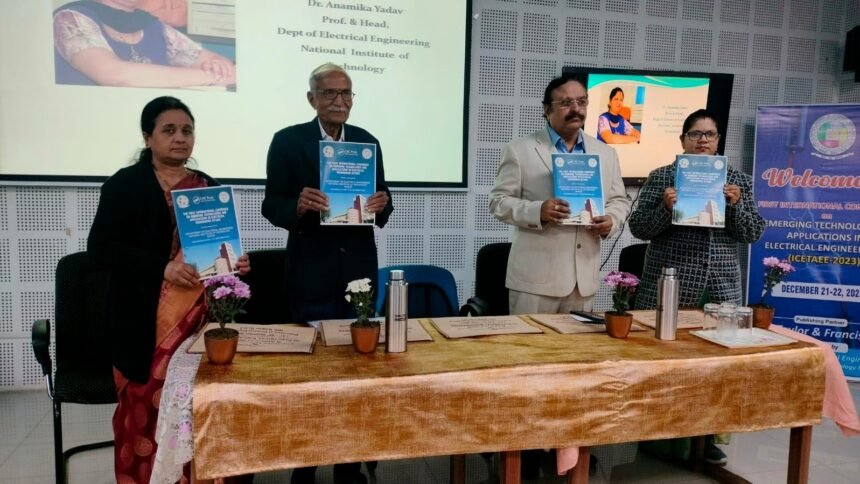 रायपुर (PIB). राष्ट्रीय प्रौद्योगिकी संस्थान (एनआईटी) रायपुर के इलेक्ट्रिकल इंजीनियरिंग विभाग द्वारा इमर्जिंग टेक्नोलॉजिस एंड एप्लिकेशन इन इलेक्ट्रिकल इंजीनियरिंग पर पहले अंतर्राष्ट्रीय सम्मेलन का शुभारम्भ किया गया। यह सम्मेलन 21-22 दिसंबर 2023 को आयोजित किया जाएगा। एनआईटी रायपुर में आयोजित होने वाले इस दो दिवसीय कार्यक्रम में जीईसी-एनआईटी रायपुर एलुमनी एसोसिएशन के अध्यक्ष, सेवानिवृत्त अध्यक्ष और प्रबंध निदेशक, हिंदुस्तान कॉपर लिमिटेड, श्री कैलाश धर दीवान की मुख्य अतिथि के रूप में उपस्थिति रही। डॉ. ए.एस. ठोके, सेवानिवृत्त प्रोफेसर, इलेक्ट्रिकल इंजीनियरिंग विभाग, एनआईटी रायपुर, सम्मानित अतिथि इस कार्यक्रम के सम्मानीय अतिथि रहे। एनआईटी रायपुर के निदेशक प्रोफेसर एन.वी. रमना राव ने सम्मेलन के लिए मुख्य संरक्षक की भूमिका निभाई।