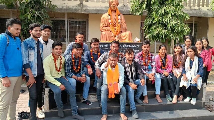 नगर मंत्री अंकित यादव ने इस अवसर पर अपने उद्बोधन में कहा हमको अपने शरीर से मन से बुद्धि से आत्मा से अपने विचारों से सशक्त बनना है मजबूत बनना है स्वामी विवेकानंद कहते हैं युवाओ में आत्मविश्वास होना चाहिए विवेक होना चाहिये, संयम होना चाहिए, विनम्र होना चाहिए किंतु युवाओं को तीन चीजों से बचना चाहिए नशा, नकारात्मकता तीसरा निष्क्रियता इन तीन चीजों से बचेंगे तभी आप मजबूत बनेंगे आगे बढ़ सकते हैं। स्वामी विवेकानंद हमारे प्रेरणा स्रोत है अगर आप लोग किताब पढ़ेंगे उनके विचारों को अपनाएंगे तो जीवन में कभी भी आप लोग हारेंगे नहीं बल्कि जीतेंगे, आगे बढ़ेंगे और मजबूत बनेंगे। मुख्य रूप से कुनाल सिंह राजपूत प्रदेश सोसल मीडिया सह संयोजक उपस्थित थे।
