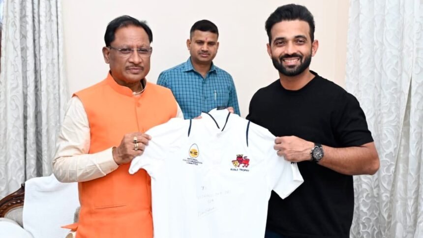 इस दौरान मुख्यमंत्री साय ने रहाणे को बेल मेटल से निर्मित मूर्ति और शॉल भेंट कर उनका अभिनन्दन किया। रहाणे ने मुख्यमंत्री को सम्मानपूर्वक मुंबई रणजी टीम का टी-शर्ट और अपना हस्ताक्षर किया हुआ बल्ला भेंट किया। इस अवसर पर मुख्यमंत्री के सचिवद्वय पी. दयानन्द और बसवराजू एस. भी मौजूद थे।
