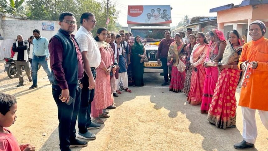 मुंगेली (PIB)। केंद्र सरकार की योजनाओं को जन-जन तक पहुँचाने एवं इन योजनाओं से लाभान्वित हितग्राहियों से संवाद करने के उद्देश्य से विकसित भारत संकल्प यात्रा के तहत आज लोरमी विकासखंड के ग्राम झझपुरी कला और सारधा में शिविर का आयोजन किया गया। इस दौरान बड़ी संख्या में लोग पहुंचे और शासन की योजनाओं का लाभ उठाने उनमें काफी उत्साह देखा गया। शिविर में विभिन्न विभागों द्वारा केंद्र सरकार की महत्वाकांक्षी योजनाओं के प्रचार-प्रसार एवं योजनाओं के लाभ से वंचित लोगों को लाभ दिलाने के लिए स्टॉल लगाया गया।