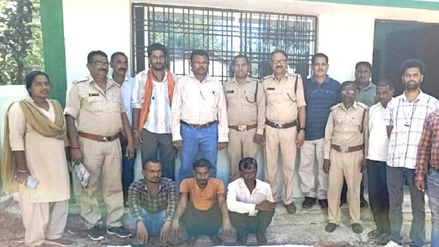 सूचना मिलते ही उडऩदस्ता दल ने स्थानीय वन कर्मचारियों के सहयोग से कुंवारपुर परिक्षेत्र अंतर्गत भगवानपुर परिसर के चांगदेवी माता मंदिर चौराहा के नजदीक सड़क पर बाइक के साथ संदिग्ध अवस्था में खड़े मदन सिंह निवासी ग्राम खमरौध, पवन यादव ग्राम खमरोध, राजेन्द्र सिंह ग्राम भगवानपुर को पकड़ा गया। टीम द्वारा बाइक की जांच करने पर बाइक में वन्यप्राणी तेंदुए की खाल मिली है।