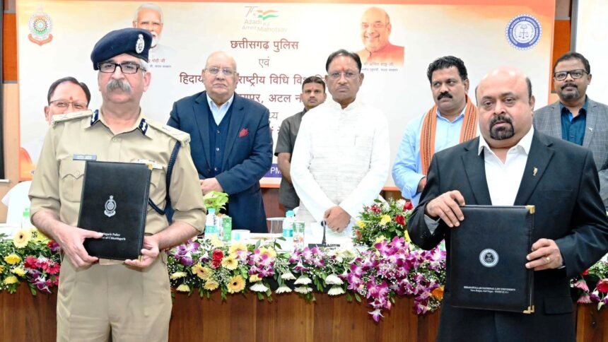 मुख्यमंत्री साय की उपस्थिति में छत्तीसगढ़ पुलिस एवं हिदायतुल्लाह राष्ट्रीय विधि विश्वविद्यालय के मध्य नवीन आपराधिक कानूनों पर प्रशिक्षण हेतु हुआ एमओयू