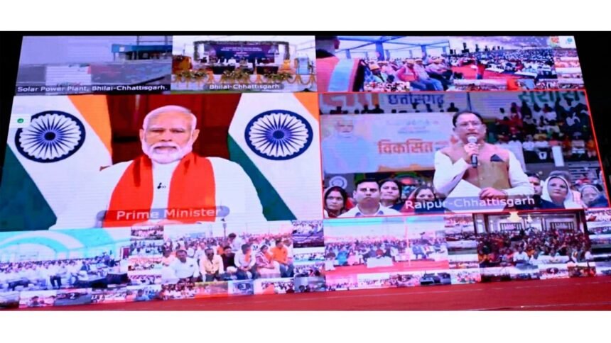 प्रधानमंत्री नरेन्द्र मोदी विकसित भारत विकसित छत्तीसगढ़ संकल्प यात्रा कार्यक्रम में वीडियो कॉन्फ्रेंसिंग के द्वारा हुए शामिल