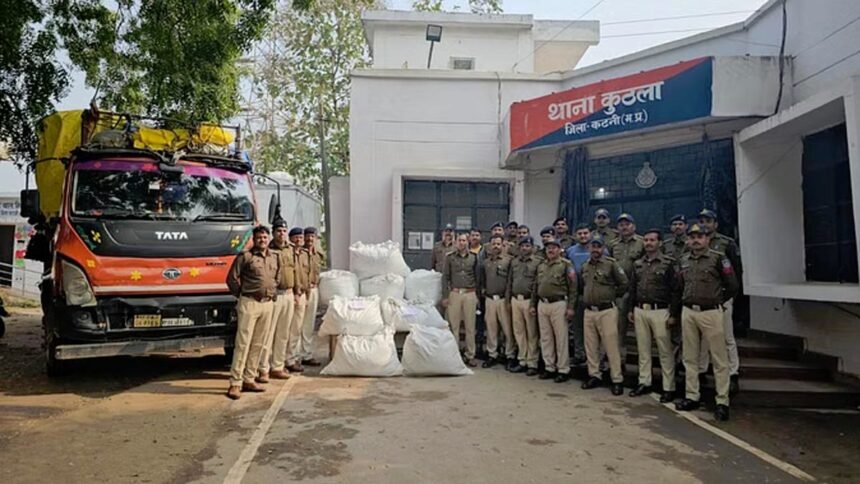 कटनी (एजेंसी)। मध्यप्रदेश की कटनी पुलिस ने उड़ीसा से सीधी जा रही गांजा की बड़ी खेप पकड़ी है। पूरी कार्रवाई कुठला पुलिस ने ट्रांसपोर्ट नगर से लगे बाईपास हाइवे के पास अंजाम दी है, जहां कुठला पुलिस को एक ट्रक में गांजे से भरी 8 बोरियां मिली है। इस पूरे मामले पर कटनी पुलिस अधीक्षक अभिजीत कुमार रंजन ने कंट्रोल रूम में प्रेसवार्ता करते हुए बताया कि उड़ीसा से गांजा की बड़ी खेप लेकर छत्तीसगढ़ के रास्ते एमपी में दाखिल होकर सीधी जिले की तरफ जा रहा था।