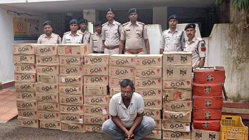 अंबिकापुर। सूरजपुर जिले की रामानुजनगर पुलिस ने पिकअप वाहन से भारी मात्रा में अवैध शराब बरामद की है। पुलिस ने इस मामले में एक आरोपित को गिरफ्तार कर लिया है। इस मामले में पुलिस सरगर्मी से तलाशी कर रही है। पुलिस ने 77 पेटी में 706 लीटर अवैध अंग्रेजी शराब बरामद की है, जिसकी कीमत सवा चार लाख से अधिक बताई जा रही है। शराब मध्यप्रदेश से लाई गई थी।