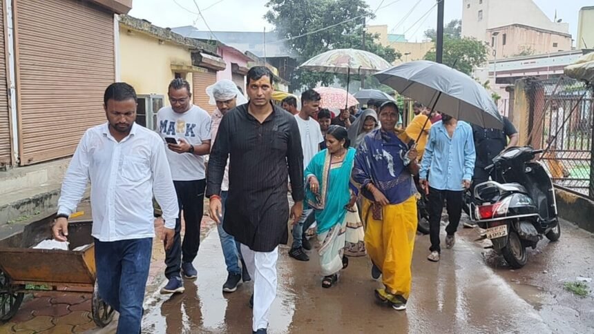 बरसते बारिश में भीगते हुए विधायक देवेंद्र ने की प्रगति यात्रा… लाखों के ​विकास कार्यों की दी सौगात