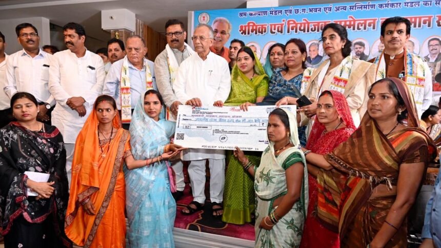 श्रमिक एवं नियोजक सम्मेलन व सम्मान समारोह में असंगठित क्षेत्र के अंतर्गत मुख्यमंत्री सशक्ति सहायता योजना के 53, मिनीमाता महतारी जतन योजना के 49, मुख्यमंत्री सियान सहायता योजना के 11, मुख्यमंत्री सायकल सहायता योजना के 1310, मुख्यमंत्री नौनिहाल छात्रवृत्ति सहायता योजना के 534 एवं ई-रिक्शा सहायता योजना के 10 इस प्रकार कुल 1967 हितग्राहियों को 90 लाख और श्रम कल्याण मंडल के अंतर्गत छात्रवृत्ति योजना के 520, सायकल सहायता योजना के 269 एवं सिलाई मशीन सहायता योजना के 48 इस प्रकार कुल 837 हितग्राहियों को 43 लाख रूपए की राशि का चेक वितरित किया गया।