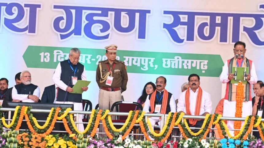 भाजपा ने रविवार को पूर्व केंद्रीय मंत्री और छत्तीसगढ़ में प्रदेश अध्यक्ष के रूप में काम कर चुके आदिवासी नेता साय (59) को नए मुख्यमंत्री के रूप में चुना। रायपुर के साइंस कॉलेज मैदान में हुए समारोह में 50 हजार से अधिक लोग प्रत्यक्षदर्शी बने। अधिक से अधिक लोग शपथग्रहण देख सके इसके लिए ‘एलईडी’ स्क्रीन भी लगाई गई है। सुरक्षा व्यवस्था में लगभग 1000 पुलिस जवान तैनात रहे।