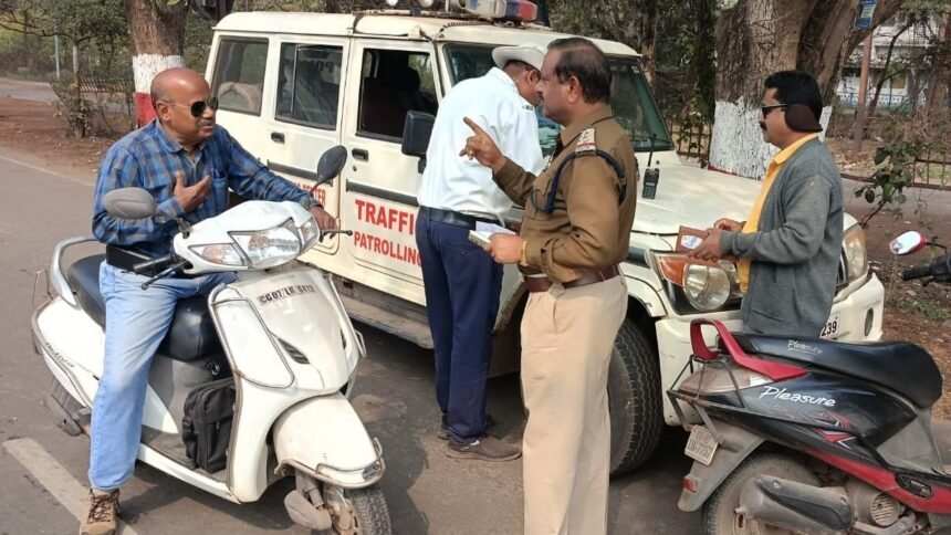 शहर में बिना हेलमेट वाहन चालाने वालों पर कार्रवाई, ट्रैफिक पुलिस ने काटा 440 लोगों का चालान