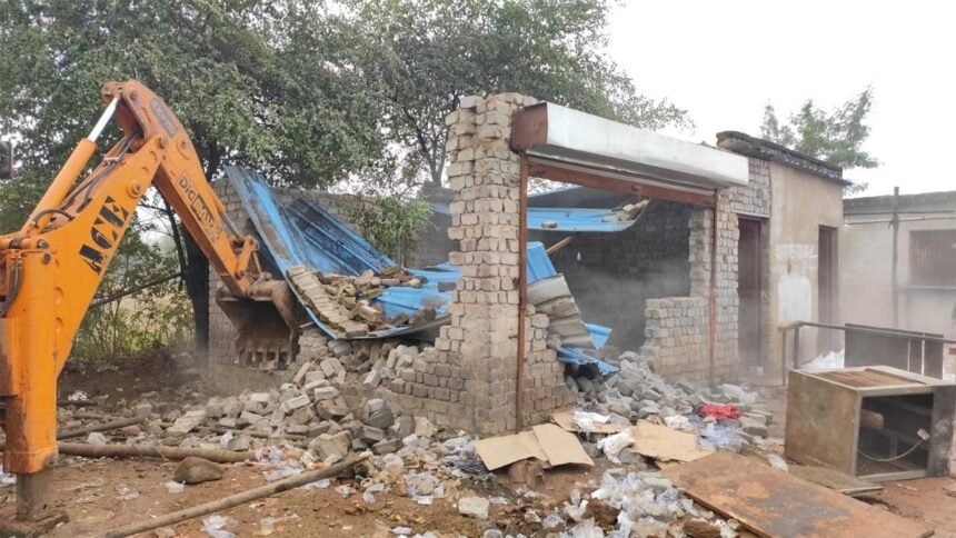 भिलाई । छत्तीसगढ़ में सरकार बदलने के साथ ही शहरों में भी इसका असर दिखने लगा है। बीते दो दिनों से भिलाई निगम व पुलिस प्रशासन द्वारा शराब की दुकानों के पास अवैध रूप से संचालित चखना सेंटरों पर कार्रवाई कर रही है। बुधवार को दुर्ग व भिलाई में कई चखना सेंटरों में कार्रवाई कर उन्हें बेदखल किया गया। इसी कड़ी में गुरुवार को भी भिलाई निगम की टीम ने पुलिस के सहयोग से कार्रवाई की। सुबह से ही निगम की टीम ने कार्रवाई शुरू कर दी। निगम आयुक्त रोहित व्यास की मौजूदगी में गुरूवार को जवाहर नगर, कुरूद और खुर्सीपार स्थित शराब दुकान के पास बने अवैध चखना सेंटर को तोड़फोड़ कर ध्वस्त किया गया और प्रतिबंधित पानी पाउच व अन्य सामग्री को जप्त किया गया।