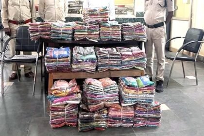 महिला वोटर्स को बांटने ले जा रहे साड़ियों को पुलिस ने किया जब्त, पुलिस को देख भागा चालक
