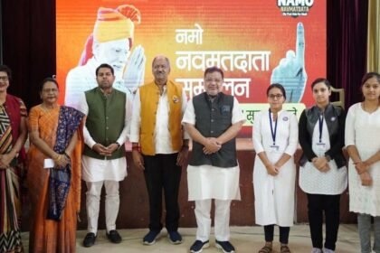 नमो नवमतदाता सम्मेलन : संजय रुंगटा कॉलेज के ऑडिटोरियम में स्टूडेंट्स ने सुनी पीएम मोदी बातें, विधायक रिकेश भी रहे मौजूद