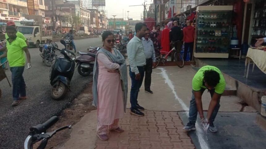 बता दें सुपेला में लगने वाले संडे मार्केट को व्यवस्थित करने की समय समय पर कोशिश होती है। निगम द्वारा मार्किंग की जाती है और कुछ समय बाद फिर से वही स्थिति निर्मित हो जाती है। पिछले कुछ माह से यहां संडे मार्केट के दौरान आने जाने में लोगों को काफी परेशानियों का सामना करना पड़ रहा है। इसके देखते हुए निगम प्रशासन द्वारा शनिवार को संडे मार्केट में दोनों ओर चूना से मार्किंग की गई और दुकान दायरे में लगाने की समझाइश दी गई।
