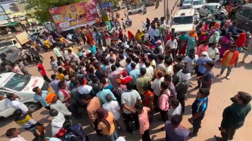 भिलाई। बुधवार की रात को सुपेला गदा चौक से कोहका के बीच हुए हादसे में मृत मणिराम के परिवार को न्याय दिलाने लोगों का आक्रोश फूट पड़ा। गुरुवार दोपहर को मृतक के परिजनों व लोगों ने मिलकर अंवतिबाई चौक पर चक्काजाम कर दिया। मृतक के परिजनों के समर्थन में लोगों ने की मांग थी कि उनके परिवार के किसी एक सदस्य को नौकरी दी जाए और परिवार को आर्थिक मदद के लिए 10 लाख का मुआवजा दिया जाए।
