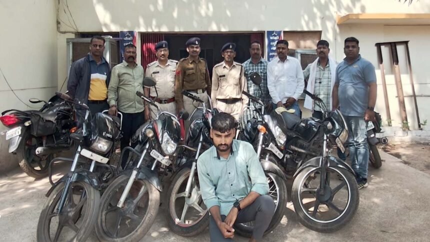 भिलाई। सुपेला थाना क्षेत्र के तहत स्मृति नगर चौकी पुलिस ने वाहन चोर को पकड़ने में सफलता पाई है। शंकराचार्य मेडिकल कॉलेज के पार्किंग से वाहन चोरी होने के बाद पुलिस एक्टिव हुई। सीसी टीवी फुटेज के आधार पर पुलिस आरोपी तक पहुंची। आरोपी ने एक नहीं पूरे पांच बाइक चोरी की थी। आरोपी की निशानदेही पर पुलिस ने 5 बाइक बरामद किया है जिसकी कीमत सवा दो लाख रुपए से ज्यादा है।