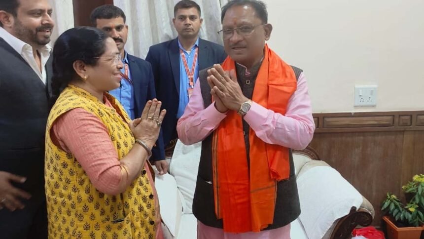 बता दें छत्तीसगढ़ में हुए विधानसभा चुनाव में भारतीय जनता पार्टी ने 90 में से 54 सीटों पर जीत दर्ज किया है। चुनाव में जीत के एक सप्ताह बाद प्रदेश के मुख्यमंत्री के रूप में जशपुर जिले के कुनकुरी विधानसभा से जीत दर्ज करने वाले सीनियर नेता विष्णुदेव साय को चुना। साय के मुख्यमंत्री बनने के बाद चौतरफा खुशी का माहौल है। इस बीच भिलाई शहर की भाजपा नेत्री श्रीमती तुलसी साहू ने मंगलवार को रायपुर पहुंचकर सीएम साय को बधाई दी और छत्तीसगढ़ के चौतरफा विकास की मंगल कामना की।