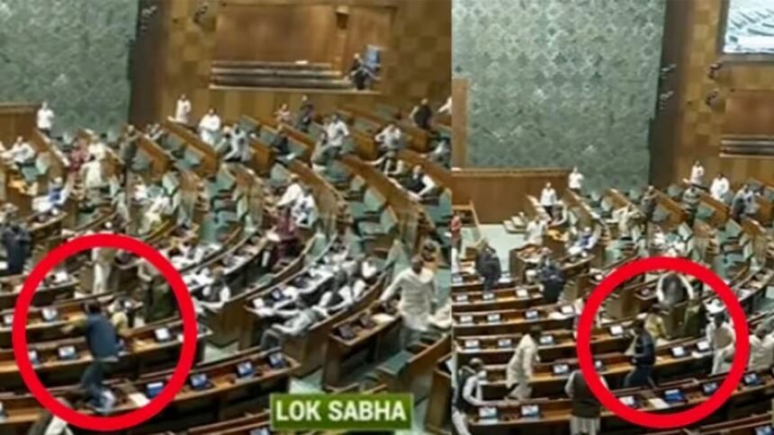 मीडिया में आई खबरों के अनुसार दो शख्स जब गैलरी से कूदे उसी समय सदन में धुआं भी उठा। अफरा-तफरी मचने के बाद सुरक्षाकर्मियों ने दोनों लोगों को पकड़ा। सांसदों ने बताया कि सबसे पहले खुद सांसदों ने दोनों लोगों को पकड़ा, उनकी पिटाई की गई। इसके बाद दोनों को सदन में मौजूद सुरक्षाकर्मियों के हवाले कर दिया गया। खास बात ये है कि आज ही संसद पर आतंकी हमले की 22वीं बरसी है। 21 साल पहले आतंकियों ने आज ही पुराने संसद भवन पर आतंकी हमला किया था।