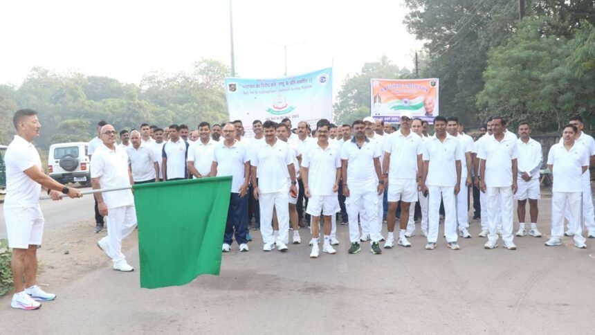 भिलाई। रिसाली स्थित आईजी बीएसएफ मुख्यालय में शुक्रवार को सतर्कता जागरूकता सप्ताह के तहत वॉकाथन का आयोजन किया गया। आईजी बीएसएफ सतीश एस खंडारे के निर्देश पर पांच किमी वॉकाथन में 150 से अधिक अफसर व जवानों ने हिस्सा लिया। रिसाली मुख्यालय में आईजी सतीश एस खंडारे ने हरी झंडी दिखाकर रवाना किया। आयोजन का मुख्य उद्वेश्य जवानों को सिद्धांतो पर आधारित सेवा प्रदान कर अपने कर्तव्यों का पालन पूर्ण ईमानदारी तथा बिना पक्षपात के करने के लिए प्रेरित करना एवं जागरूकता फैलाना था ।
