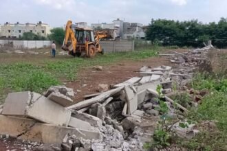 कोहका में अवैध प्लॉटिंग : भिलाई निगम ने की कार्रवाई, बाउंड्रीवॉल तोड़कर जमीन को कराया कब्जामुक्त