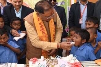 जन्मदिन पर गृह नगर पहुंचे मुख्यमंत्री साय : बच्चों को दिया न्योता भोज, बालक आश्रम शाला में बच्चों के साथ काटा केक