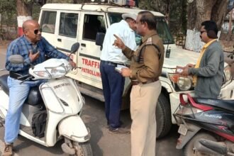 शहर में बिना हेलमेट वाहन चालाने वालों पर कार्रवाई, ट्रैफिक पुलिस ने काटा 440 लोगों का चालान