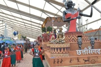 रायपुर। गणतंत्र-दिवस परेड में शामिल होने से पूर्व हुए प्रेस-रिव्यू के दौरान छत्तीसगढ़ की ओर से प्रदर्शित की जा रही झांकी ‘बस्तर की आदिम जनसंसद: मुरिया दरबारने राष्ट्रीय मीडिया की…
