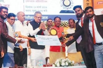 रायपुर। गुरूवार को पं. दीनदयाल उपाध्याय आडिटोरियम में आयोजित राज्य खेल अलंकरण समारोह में नेटबाल खिलाड़ी मोहन राव, इमरान खान, मनोज साहू, प्रकाश विश्वकर्मा, प्रशांत जैकत, निलेश शर्मा को राजीव…