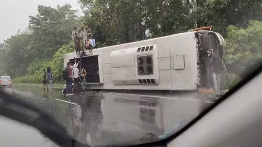 जगदलपुर। रायपुर से जगदलपुर जा रही यात्री बस गुरुवार सुबह बस्तर जिले के बोलेंगा के पास सड़क पर पलट गई। बस में 25 से 30 यात्री सवार थे जो इस हादसे से बाल बाल बचे। यात्रियों को मामूली चोटे आई। बताया जा रहा है कि ट्रक को ओवरटेक करने के चक्कर में यात्री बस सड़क पर पलट गई। सूचना के बाद बस्तर पुलिस मौके पर पहुंची और इस दौरान बस में सवार यात्रियों को इमरजेंसी एग्जिट से बाहर निकाला गया। इसके दूसरी बस से यात्रियों को जगदलपुर के लिए रवाना किया गया।