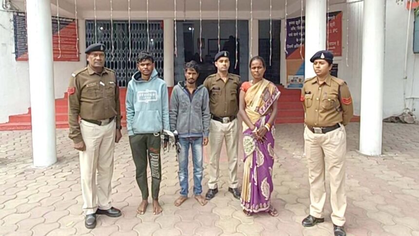 जांजगीर-चांपा। छत्तीसगढ़ के जांजगीर-चांपा जिले में थाना चांपा की पुलिस ने अंधे कत्ल की गुत्थी सुलझाने में सफलता पाई। दो पहले यहां के एक शराब की दुकान में सुरक्षा कर्मियों की हत्या कर दी गई थी। हत्या के बाद बदमाशों ने शराब की दुकान से शराब व नगदी चुराया था। घटना के बाद पुलिस ने जांच शुरू की। इस दौरान पुलिस ने 350 से ज्यादा सिम व 700 से ज्यादा मोबाइल से जानकारी जुटाई। काफी मशक्कत के बाद पुलिस को सफलता मिली। पुलिस ने मामले में चांपा थाना क्षेत्र के ग्राम सिवनी निवासी शिवशंकर उर्फ मुन्ना सहिस व उसकी पत्नी मंगली सहिस उर्फ माला व उसके बेटे कृष्णा सहिस को गिरफ्तार किया है।