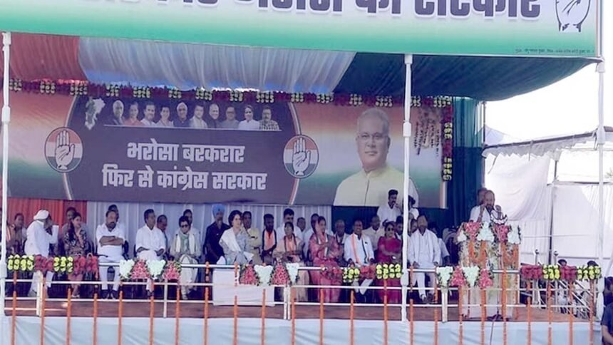 धमतरी। छत्तीसगढ़ के धमतरी जिले की कुरूद विधानसभा में मंगलवार को कांग्रेस की राष्ट्रीय महासचिव प्रियंका गांधी ने आमसभा ली। प्रचार के लिए पहुंची प्रियंका गांधी ने केन्द्र की मोदी सरकार पर जमकर हमला किया। उन्होंने आमसभा को संबोधित कर जिले की तीनों विधानसभा कुरूद, सिहावा और धमतरी के प्रत्याशियों के पक्ष में वोट करने की अपील की। इस दौरान उन्होंने कहा कि छत्तीसगढ़ में धान का पैसा भूपेश सरकार देती है। केन्द्र की मोदी सरकार को अड़ानी व अंबानी चला रहे हैं।