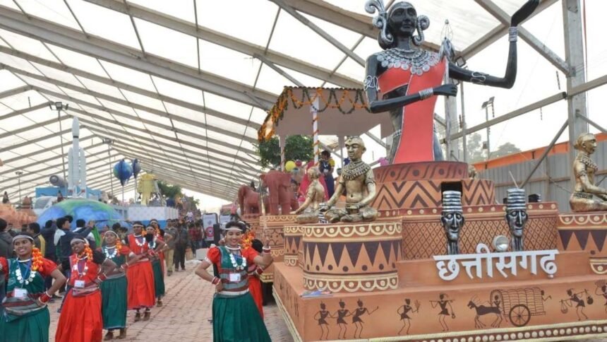 रायपुर। गणतंत्र-दिवस परेड में शामिल होने से पूर्व हुए प्रेस-रिव्यू के दौरान छत्तीसगढ़ की ओर से प्रदर्शित की जा रही झांकी ‘बस्तर की आदिम जनसंसद: मुरिया दरबारने राष्ट्रीय मीडिया की जमकर तारीफें बटोरीं। यह झांकी छत्तीसगढ़ के जनजातीय समाज में आदिम काल से मौजूद लोकतांत्रिक चेतना का प्रमाण प्रस्तुत करती है। प्रेस रिव्यू का आयोजन नई दिल्ली की राष्ट्रीय रंगशाला में आयोजित किया गया था।