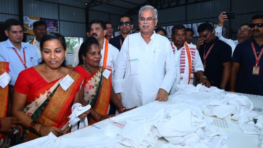 बीजापुर। मुख्यमंत्री भूपेश बघेल ने ईटपाल स्थित बीजापुर गवर्नमेंट फैक्ट्री का लोकार्पण किया। इस अवसर पर उन्होंने गारमेंट फैक्ट्री में चल रहे कपड़ा निर्माण के कार्यों का निरीक्षण भी किया और यहां कार्यरत महिलाओं से बात की। श्री बघेल ने फैक्ट्री से हरी झंडी दिखाकर बाजार के लिए तैयार उत्पादों की पहली खेप को रवाना किया।