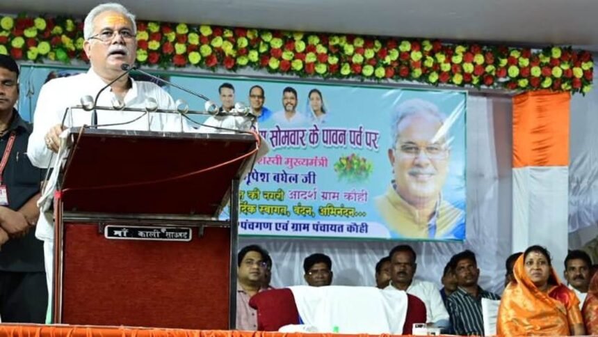 कार्यक्रम में मुख्यमंत्री बघेल ने क्षेत्र के बारह किसानों को खसरा बी-1, बी-2 अपने कर कमलों से वितरण किया। कार्यक्रम को सम्बोधित करते हुए मुख्यमंत्री बघेल ने कहा कि प्रदेशवासियों पर भगवान भोले नाथ की कृपा बनी रहे। उन्होंने सभी को सावन सोमवार की बधाई दी। क्षेत्रवासियों की मांग के अनुरूप सिंचाई सुविधा विस्तारित होने जा रही है। मुख्यमंत्री ने कहा कि सरकार सभी वर्ग के विकास के लिए योजनाएं संचालित कर रही है। सांस्कृतिक गतिविधियों को पुनर्जीवित करने का काम कर रही है। सरकार की योजनाओं से प्रदेश को पहचान मिली है। मुख्यमंत्री श्री बघेल ने लोगों की मांग पर मंदिर परिसर के सौन्दर्यीकरण का भरोसा दिलाया। उन्होंने क्षेत्र के विकास के लिए सेवा का अवसर प्रदान करने लोगों का आह्वान किया। कार्यक्रम को जनपद पंचायत उपाध्यक्ष श्री अशोक साहू ने भी सम्बोधित किया। इस अवसर पर स्थानीय जनप्रतिनिधियों और बड़ी संख्या में लोग उपस्थित थे।