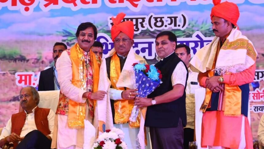 रायपुर। मुख्यमंत्री विष्णु देव साय शनिवार को प्रदेश राईस मिलर्स एसोसिएशन द्वारा राजधानी रायपुर स्थित एक निजी होटल में आयोजित अभिनंदन समारोह में शामिल हुए। मुख्यमंत्री साय का समारोह में मिलर्स एसोसिएशन के सदस्यों ने ड्रायफ्रूट की माला, साफा और गजमाला पहनाकर अभिनंदन किया। मुख्यमंत्री ने अभिनंदन समारोह के आयोजन के लिए मिलर्स एसोसिएशन को धन्यवाद देते हुए नववर्ष की अग्रिम बधाई दी।