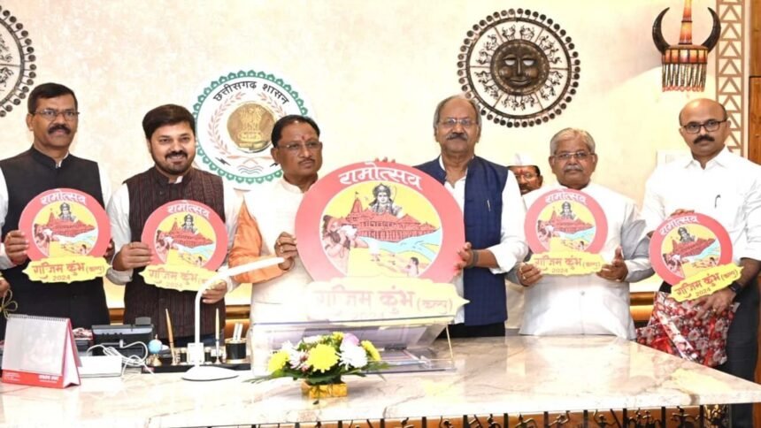 रायपुर। मुख्यमंत्री विष्णु देव साय ने शुक्रवार को विधानसभा कार्यालय कक्ष में संस्कृति विभाग द्वारा निर्मित राजिम कुम्भ कल्प 2024 के लोगो और छत्तीसगढ़ सांस्कृतिक पंचांग का विमोचन किया। इस अवसर पर संस्कृति मंत्री बृजमोहन अग्रवाल, विधायक धरम लाल कौशिक, विधायक अनुज शर्मा, संस्कृति विभाग के सचिव अन्बलगन पी., संस्कृति विभाग के संचालक विवेक आचार्य, पर्यटन मंडल के प्रबंध संचालक जितेंद्र शुक्ला भी उपस्थित थे।