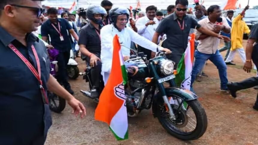 कांग्रेस की ‘भरोसे की यात्रा’ : सीएम बघेल ने पाटन में की शुरूआत, बुलेट चलाकर बाइक रैली में हुए शामिल