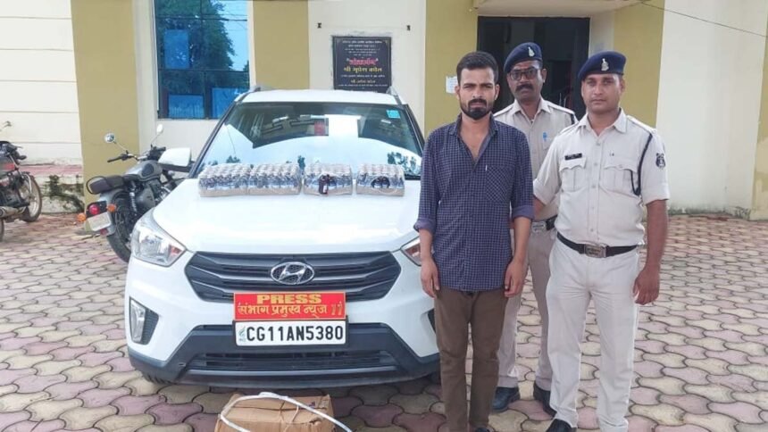 जशपुर। छत्तीसगढ़ के जशपुर जिले में प्रेस की आड़ में नशे का कारोबार करने वाले शातिर व उसके साथी को गिरफ्तार किया गया। संभाग प्रमुख न्यूज की बोर्ड लगाकर अपने क्रेटा कार से नशीली दवाइंया सीमावर्ती क्षेत्रों में सप्लाई करता था। पुलिस ने मुखबिर की सूचना पर कार्रवाई करते हुए कुनकुरी निवासी निशांत यादव और मांझाटोली निवासी अहमद खान को गिरफ्तार किया है। आरोपियों पास से एक छोटा हाथी, क्रेटा कार, नशीली दवाइयां व गांजा जब्त किया गया है।