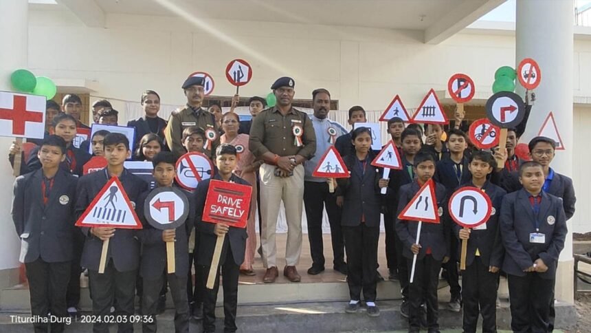 दुर्ग पुलिस के उच्च अधिकारियों द्वारा विद्यालय के शिक्षको व विद्यार्थियों को सड़क सुरक्षा व साइबर सुरक्षा से जुड़े महत्वपूर्ण टिप्स दिए गये। ट्रैफिक डीएसपी सतीश ठाकुर ने स्कूली बच्चों को हेलमेट व सीट बेल्ट पहनने के फायदे, यातायत के प्रकार, दुर्घटना के कारण, दुर्घटना रोकने के तरीके व दुर्घटना के दौरान गुड सेमेरिटन के कर्तव्यों की जानकारी दी। उन्होंने बच्चों को सडक में चलते वक़्त पूरी सावधानी बरतने कहा तथा मोबाइल का प्रयोग ना करने की जानकरी दी। साथ ही साथ उन्होंने बच्चो को अपने ही अंदाज़ में ए, बी, सी, डी सिखाई व अभिभावकों को भी प्रेरित करने की बात कही तथा बच्चो के मध्य विभिन्न कविताएं भी प्रस्तुत की।
