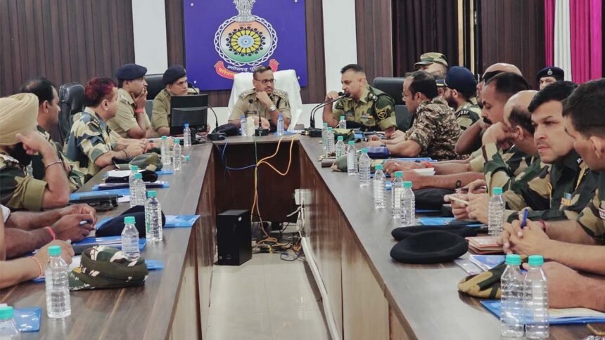 पुलिस कंट्रोल रूम सेक्टर 6 भिलाई के सभागार में हुई मीटिंग में सीआरपीएफ कमांडेंट टीएम पेटे, सुनील रही, सीआरपीएफ डीसी सौरव कुमार, बीएसएफ से कमांडेंट पी जादु, देवेन्द्र, हिमादा, राजेश सिंह, तेजपाल, एमएस सैनी सहित एसएसबी आरपीएफ, सीजीएसएपी के अधिकारी, दुर्ग पुलिस से अतिरिक्त पुलिस अधीक्षक शहर अभिषेक झा, अतिरिक्त पुलिस अधीक्षक ग्रामीण अनंत कुमार सहित सभी राजपत्रित अधिकारी उपस्थित रहे।