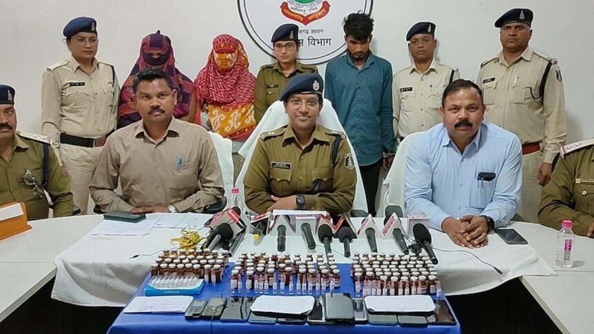 गौरेला। छत्तीसगढ़ में पुलिस द्वारा नशे के अवैध कारोबार के खिलाफ कड़ी कार्रवाई की जा रही है। इसी कड़ी में गौरेला पुलिस द्वारा नशीली दवाओं का अवैध कारोबार करने वाले दो पैडलर व एक सप्लायर को गिरफ्तार किया है। दरअसल इन ड्रग पैडलर तक पुलिस नाबालिग बच्चों के बयान के आधार पहुंची। पुलिस ने इस मामले में पैडलर बबली साहू (34) निवासी सारबहरा गौरेला व नसरीन (30) निवासी भरियान खोर पुराना गौरेला तथा सप्लायर प्रिंस रजक (22) निवासी वार्ड नंबर 7 खैरमाई चौक गौरेला को गिरफ्तार किया। इनके पास से 43 नग buprenarphine ip व 141 नग avil ip, 10 मोबाइल तथा बिक्री रकम 9000 रुपए जब्त कर 21, 22 सी एनडीपीएस एक्ट के तहत कार्रवाई की गई।