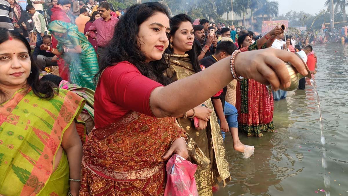 दुर्ग भिलाई के तालाबों में डूबते सूर्य व उगते सूर्य को दिया गया अर्घ्य