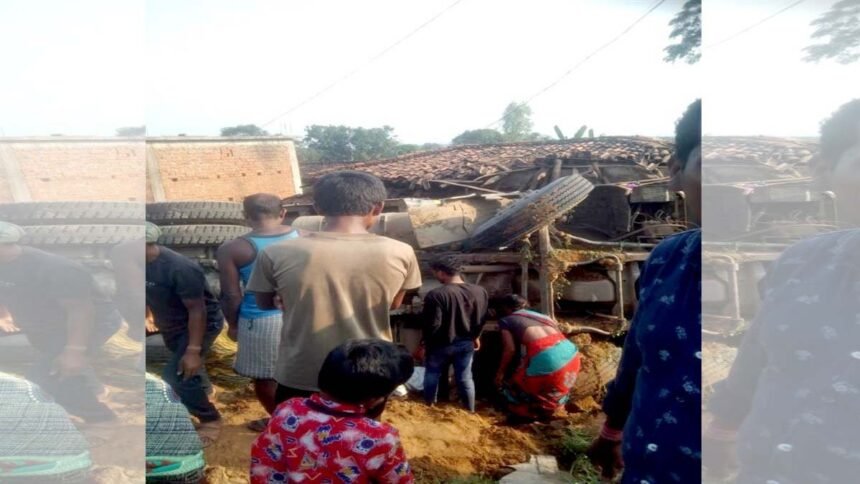 मिली जानकारी के अनुसार गिट्टी लोड हाइवा जिले के झींगों से गोपालपुर की ओर जा रही थी। इसबीच जुनापारा के पास सामने की ओर से आ रही महिंद्रा ट्रैक्टर को टक्कर मारते हुए अनियंत्रित होकर कच्चे मकान पर जा गिरी। इससे मकान क्षतिग्रस्त हो गया और मलबे में महिला दब गई। मकान संतोष उरांव का बताया जा रहा है कि मलबे में उसकी पत्नी मीना उरांव फंस गई। करीब एक घंटे तक महिला हाइवा व मकान के मलबे के बीच फंसी रही। सूचना मिलने के बाद पुलिस ने एक्सीवेटर के माध्यम से मलबा को हटाया गया और काफी मशक्कत के बाद महिला को बाहर निकाल कर राजपुर सामुदायिक स्वास्थ्य केंद्र में भर्ती किया गया। गंभीर स्थिति को देखते हुए हुए उसे मेडिकल कॉलेज रेफर किया गया जहां उसका इलाज जारी है।
