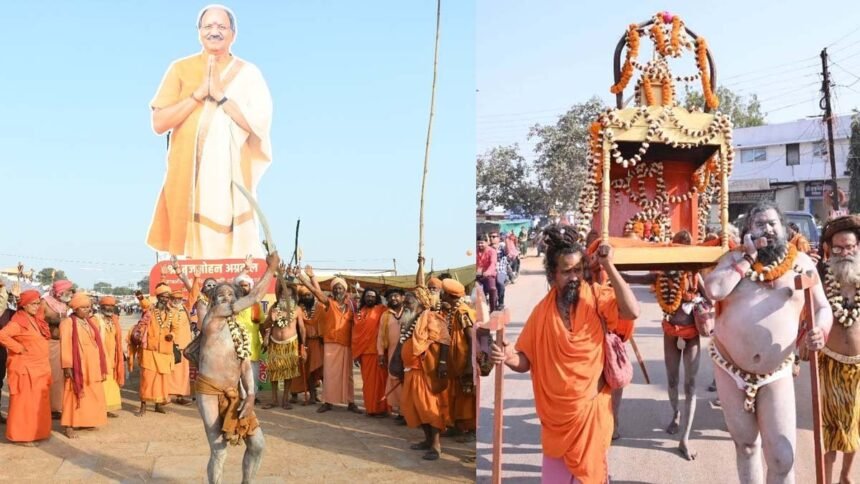 राजिम कुंभ कल्प में नागा साधुओं ने निकाली पेशवाई