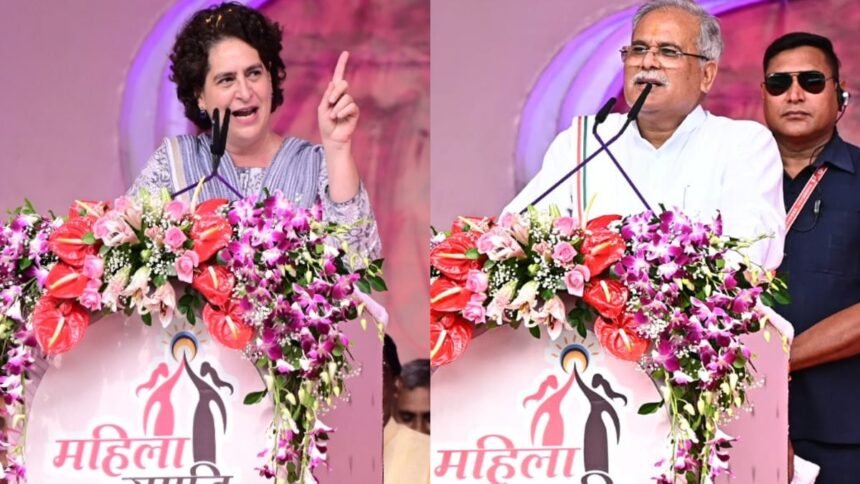 भिलाई। जयंती स्टेडियम ग्राउंड भिलाई में गुरुवार को कांग्रेस की राष्ट्रीय महासचिव प्रियंका गांधी महिला समृद्धि सम्मेलन में शामिल हुई। कार्यक्रम के दौरान प्रियंका गाँधी की उपस्थिति में मुख्यमंत्री बघेल ने सांस्कृतिक, ऐतिहासिक धरोहर और पर्यटन स्थलों को संवारने “छत्तीसगढ़ महतारी सांस्कृतिक संवर्धन योजना” लागू करने की घोषणा की।