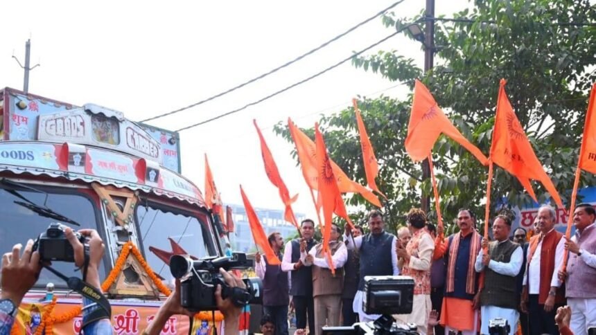 रायपुर। अयोध्या में विराजने को तैयार भगवान श्रीराम के भोग और भक्तों के लिए ननिहाल छत्तीसगढ़ से 3000 क्विंटल सुगंधित चावल की खेप आज मुख्यमंत्री विष्णुदेव साय ने रवाना की। राजधानी रायपुर में वीआई रोड स्थित राम मंदिर में इस हेतु चावल अर्पण कार्यक्रम आयोजित किया गया था। इस दौरान साय मंत्रिमंडल के सदस्य, सांसद, राईस मिल एसोसिएशन के पदाधिकारियों समेत भाजपा के नेता व कार्यकर्ता मौजूद थे। इससे पहले सीएम श्री साय ने भगवान राम का स्मरण करते हुए सजाए गए 11 ट्रकों को केसरिया झंडी दिखाई। चावल की यह खेप 1 जनवरी को अयोध्या पहुंचेगी। अयोध्या में 22 जनवरी को भव्य श्रीराम मंदिर की प्राण प्रतिष्ठा होनी है। इसी दिन विशाल भंडारे का भी आयोजन किया गया है, जिसमें 30 लाख से करीब लोगों के शामिल होने की संभावना है। इसी भंडारे के लिए श्रीराम के ननिहाल छत्तीसगढ़ से 300 टन चावल आज रवाना किया गया।