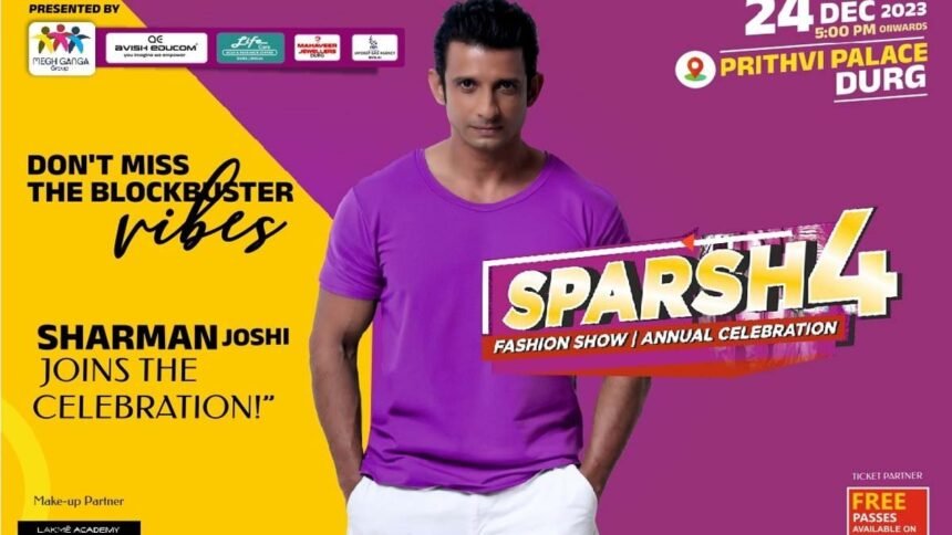 दुर्ग। साल-2023 को यादगार बनाने मेघ गंगा ग्रुप द्वारा दुर्ग में फैशन शो और बॉलीवुड नाइट SPARSH-4 का आयोजन किया जा रहा है। कार्यक्रम में बॉलीवुड के फेमस एक्टर शरमन जोशी शिरकत करेंगे। मेघ गंगा ग्रुप के चैयरमैन मनीष पारख ने बताया कि कार्यक्रम का आयोजन 24 दिसंबर रविवार को पृथ्वी पैलेस में होगा। कार्यक्रम में बॉलीवुड एक्टर शरमन जोशी शामिल हो रहे हैं। कार्यक्रम में बतौर अतिथि दुर्ग विधायक गजेंद्र यादव, भिलाई नगर विधायक देवेंद्र यादव, वैशालीनगर विधायक रिकेश सेन, दुर्ग महापौर धीरज बाकलीवाल और सीआरएम-एचपीसीएल पंकज प्रकाश रत्नपारखी शामिल होंगे।