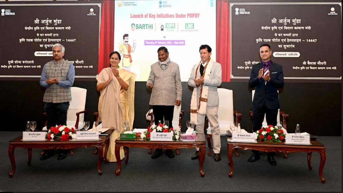 नई दिल्ली। केंद्रीय कृषि एवं किसान कल्याण और जनजातीय कार्य मंत्री अर्जुन मुंडा ने गुरुवार प्रधानमंत्री फसल बीमा योजना (पीएमएफबीवाई) के अंतर्गत तीन नई सुविधाओं का शुभारंभ किया। इस दौरान उन्होंने केंद्रीयकृत “किसान रक्षक हेल्पलाइन 14447 और पोर्टल”, कृषि-बीमा सैंडबॉक्स फ्रेमवर्क प्लेटफार्म सारथी (SARTHI) एवं कृषि-समुदाय के लिए लर्निंग मैनेजमेंट सिस्टम (एलएमएस) प्लेटफार्म का आज दिल्ली में समारोहपूर्वक शुभारंभ किया। इस अवसर पर केंद्रीय कृषि एवं किसान कल्याण तथा खाद्य प्रसंस्करण राज्य मंत्री शोभा करंदलाजे और केंद्रीय कृषि एवं किसान कल्याण राज्य मंत्री कैलाश चौधरी, केंद्रीय कृषि सचिव मनोज अहूजा भी उपस्थित थे।