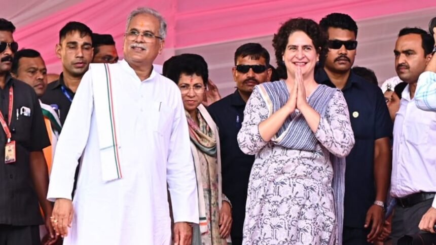 मुख्यमंत्री भूपेश बघेल के साथ प्रियंका गांधी ने किया 309.56 करोड़ रूपए के विकास कार्यों का भूमिपूजन व लोकार्पण
