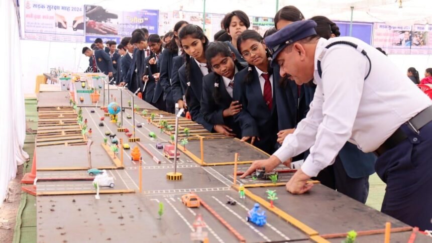 यातायात प्रदर्शनीय में स्कूली बच्चो के लिए बनाये गये गेम को बच्चे खेलकर लाभाविंत एवं उत्साहित हुए।